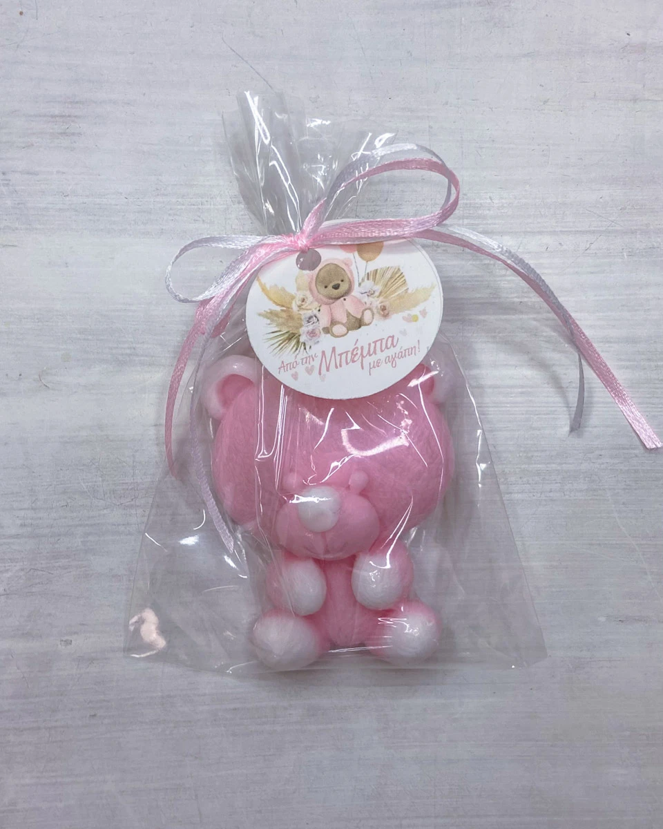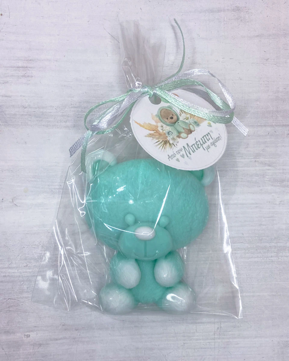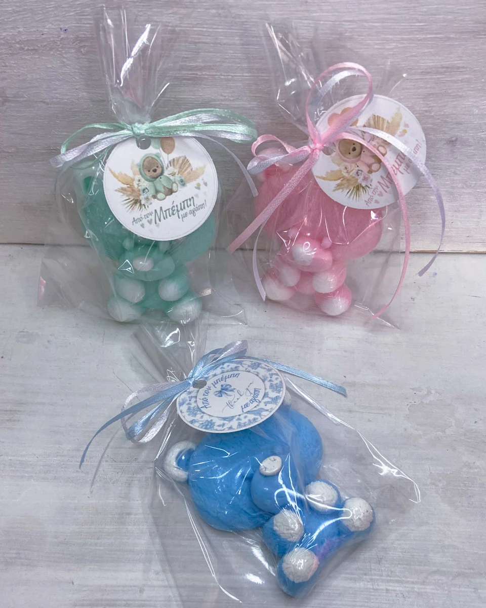 Χειροποίητο θεματικό αρωματικό κέρασμα μαιευτηρίου | ευχαριστήριο με σαπούνι γλυκερίνης Αρκουδάκι.