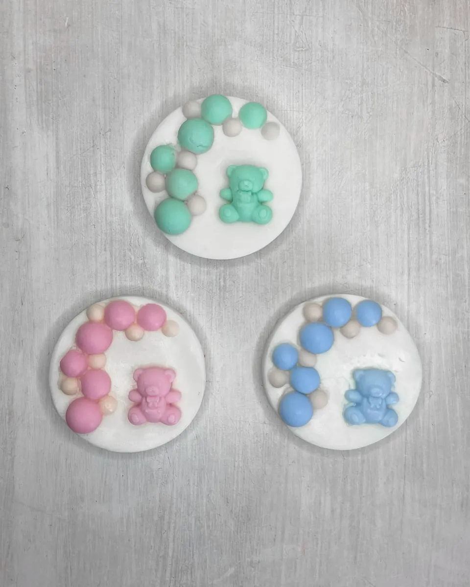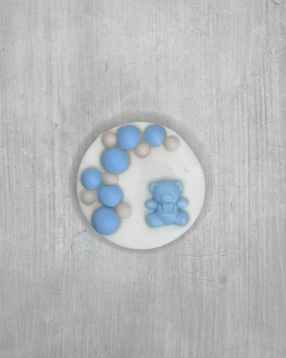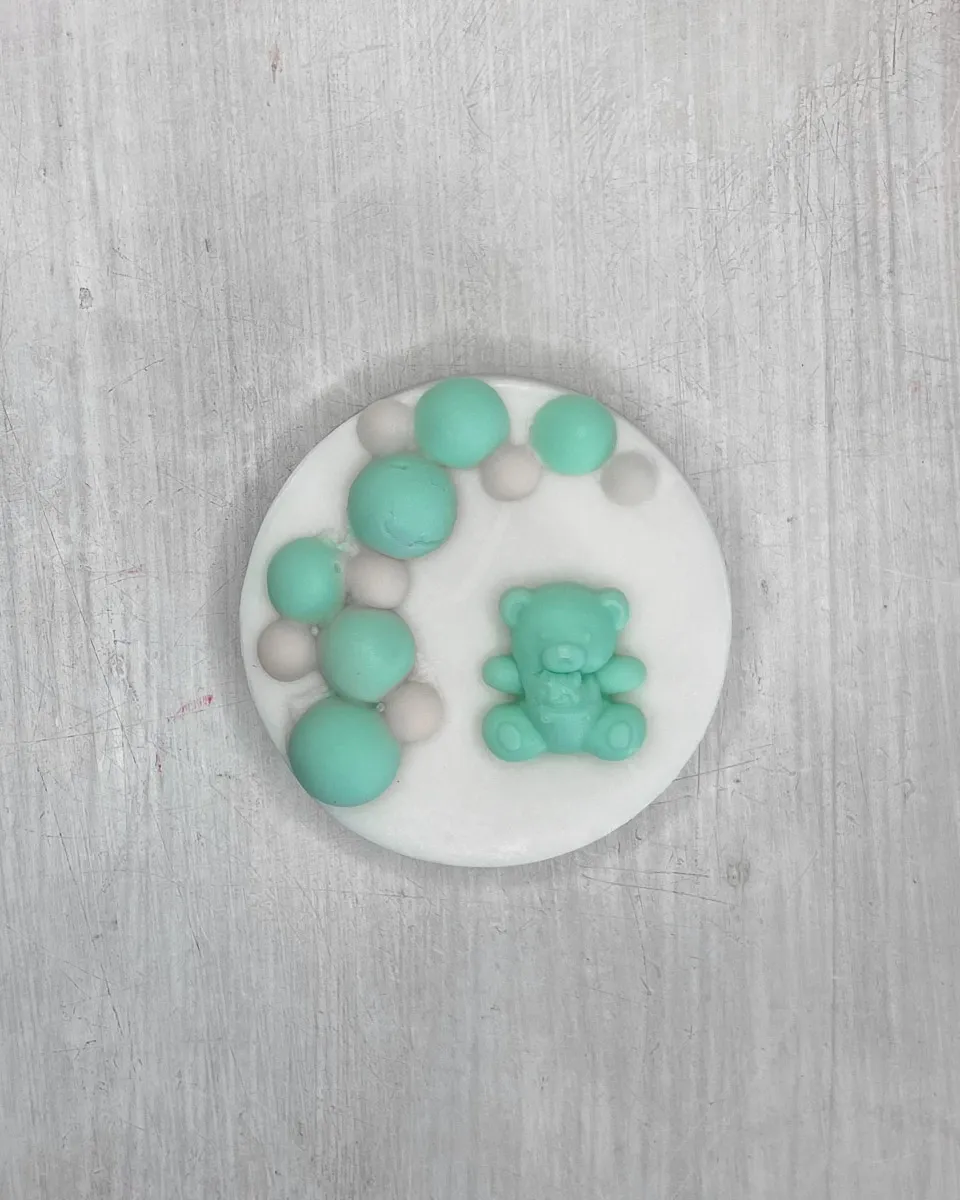 Χειροποίητο αρωματικό σαπούνι γλυκερίνης στρόγγυλο με τρισδιάστατα αρκουδάκι με μπαλόνια.