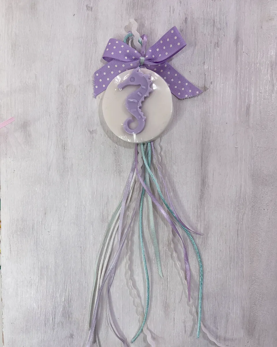 Κρεμαστή Μπομπονιέρα Σαπούνι Ιππόκαμπος, μια ιδιαίτερη και κομψή επιλογή μπομπονιέρας που αποπνέει θαλασσινή φρεσκάδα και καλοκαιρινή ανεμελιά. Είναι ιδανική για βαπτίσεις, baby shower ή θεματικά πάρτι με nautical αισθητική. Το σαπούνι είναι χειροποίητο από γλυκερίνη, με το χρώμα και άρωμα της επιλογής σας. Συνδυάστε την και με το ίδιο θεματικό προσκλητήριο.