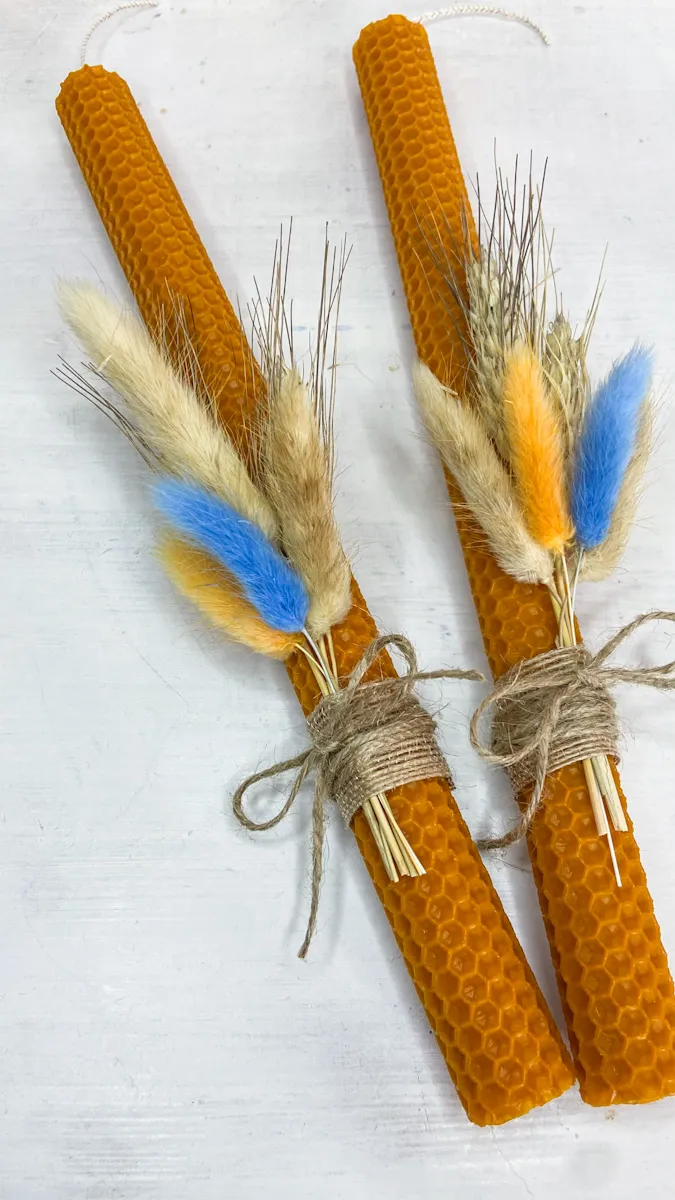 Κάντε το φετινό Πάσχα ξεχωριστό με μια μοναδική Πορτοκαλί Πασχαλινή Λαμπάδα από Φύλλα Κηρήθρας 30cm, χειροποίητη από 100% φυσική κηρήθρα. Σε πορτοκαλί χρώμα, αυτή η λαμπάδα αποπνέει κομψότητα και φυσική αισθητική.