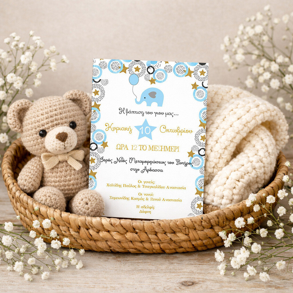 Προσκλητήριο βάπτισης Ελεφαντάκι