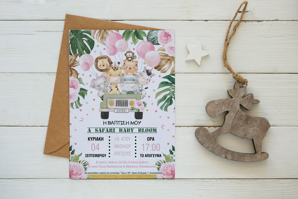 Προσκλητήριo βάπτισης Σαφάρι (Ζωάκια της ζούγκλας)
